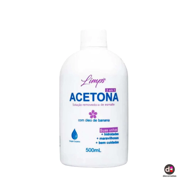 ACETONA LIMPIS COM ÓLEO DE BANANA CRUZEIRO 500ML Solução removedora de esmalte com óleo de banana, suas unhas muito mais hidratadas e bem cuidadas. Acetona Limp's Cruzeiro 2 em 1 Produto com qualidade do Grupo Cruzeiro 'Mais confiança em suas mãos'