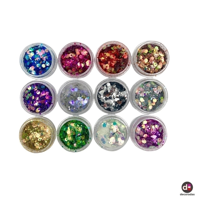 KIT COM 12 GLITTERS LUXO KAISA Glitter para deixar as unhas mais iluminadas e dentro da nova moda. Decoração de Unhas, Arte em Unhas. De fácil aplicação. 'Mais confiança em suas mãos'