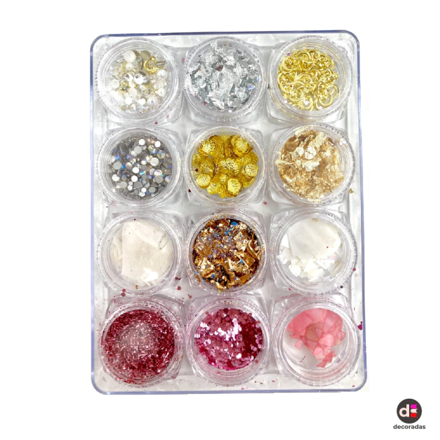 KIT COM 12 MADREPÉROLAS COM FOLHA DE OURO